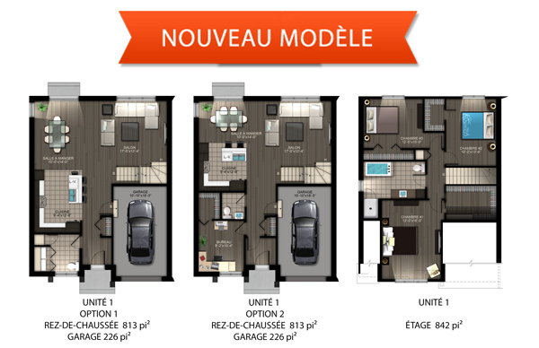 3 bedrooms on the 2nd floor, walk-in closet, a large open area on the ground floor, over 1600 ft2 of living space ... A significant change in our Place Cabral model awaits you! Discover the second option in this residential project which will be coming shortly to an end. Less than 10 minutes walk from the Chevrier bus terminus, come visit us.